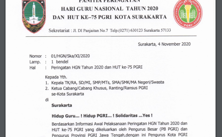Read MoreBerdasarkan informasi awal pelaksanaan peringatan HGN tahun 2020 dan hut ke-75 PGRI yang dikeluarkan oleh Pengurus Besar (PB PGRI) dan